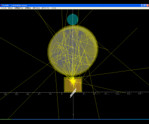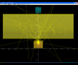 配管内の放射線、散乱状態のアニメーション(アニメーションGIF)